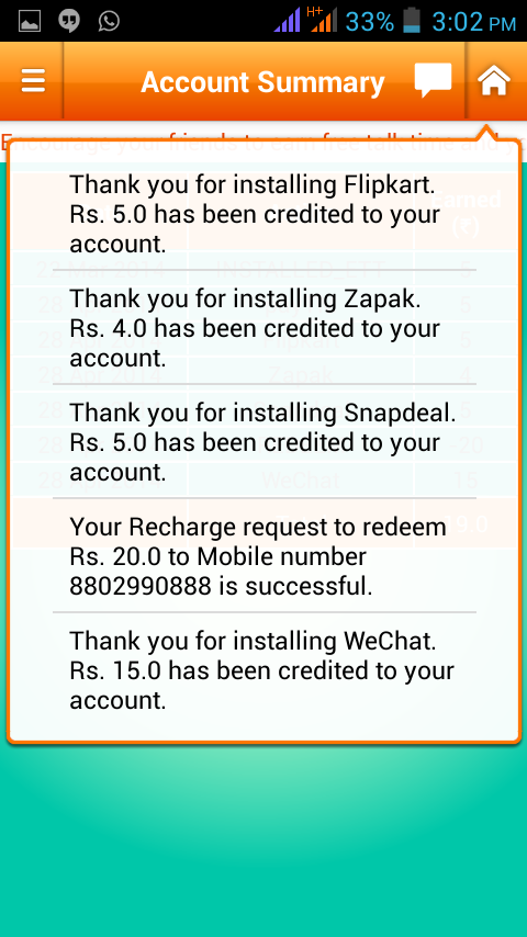 UNINSTALL ALL THE APPS LIKE FLIPKART SNAPDEAL AMAZON ZOOPER NANU AND ALL THE APPS WHICH IS RELATED TO ADS SO THAT YOU CAN EARN MAX AMOUNT YOU CAN ALSO SEE THE IMAGE HOW THIS WORKS